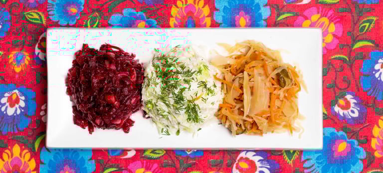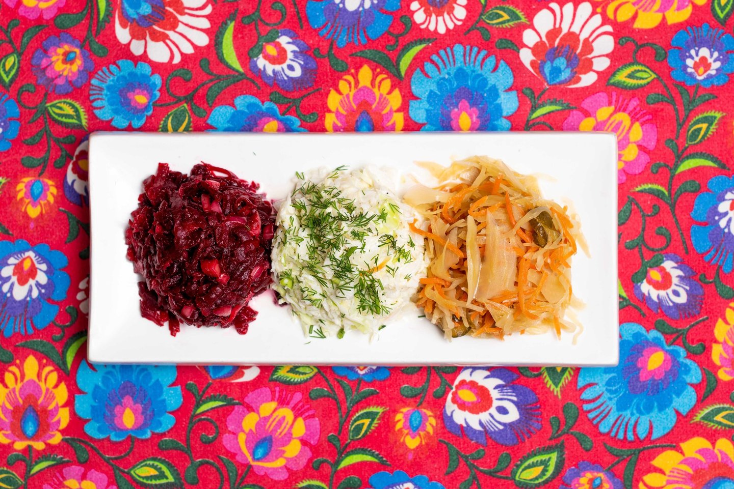 Mix de 3 ensaladas: kolesław, remolacha y encurtidos