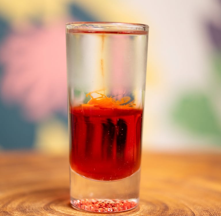 El chupito más emblemático: una combinación cuidadosamente elaborada que representa los colores de nuestra querida bandera polaca. Capas perfectamente separadas de sirope, vodka y una atrevida gota de Tabasco forman esta experiencia única. Se toma de un solo trago y es la forma ideal de comenzar —o cerrar— un encuentro inolvidable con tus personas favoritas.